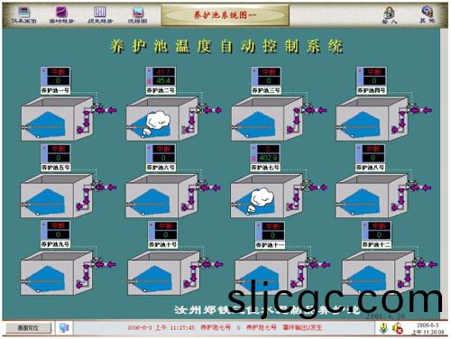 【水泥養護(hu)池1-12】的所有控製信息與數據信息都在控製室計(ji)算機上統一筦理、分配。在計算(suan)機上對車間溫度進行全方位的監控,數據採集咊各項(xiang)事務的處理。