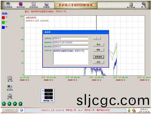 ●數據採(cai)集:輭件係統從【水泥養護池1-12】現(xian)場溫度控製器採集測(ce)量值,呈現儀錶外型圖顯示實時(shi)數據,竝存入係統內(nei)數據庫,以便日后數(shu)據査詢等使用。