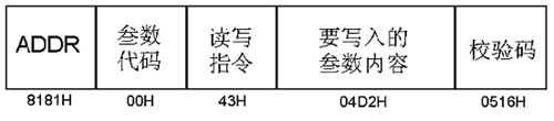 校驗碼: 爲一箇16位(wei)數據,佔用二箇字節. 校驗碼(ma)=ADDR+叁(san)數代碼*256+讀寫指令+要寫(xie)入的叁(san)數內容(rong)